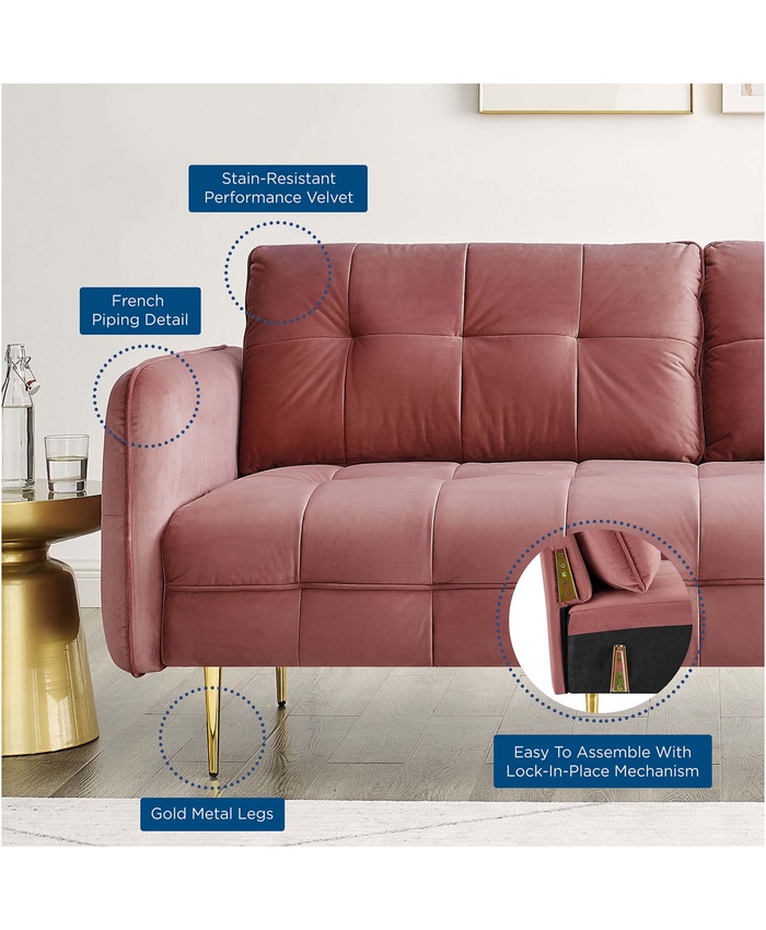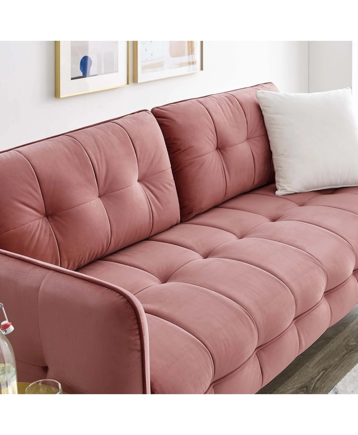 Cameron Tufted Performance Velvet Sofa in Gray