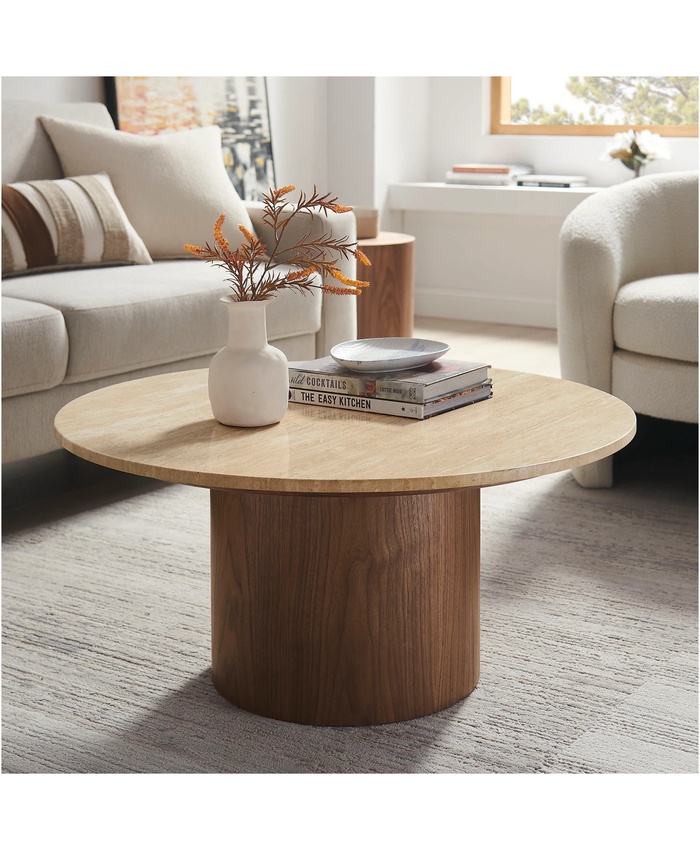 Kioni Round Travertine Coffee Table