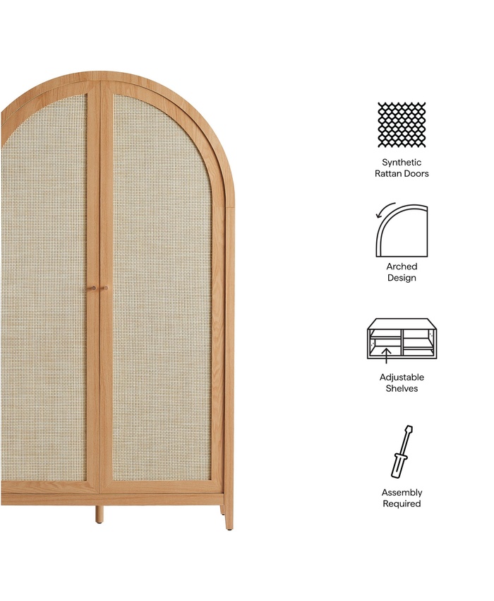 Calista 79" Tall Wide Rattan Arched Storage Cabinet