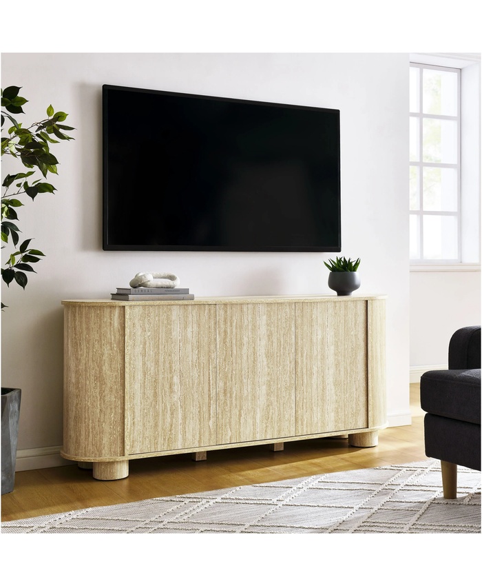 Overture 63†Oval Faux Travertine Sideboard in Travertine