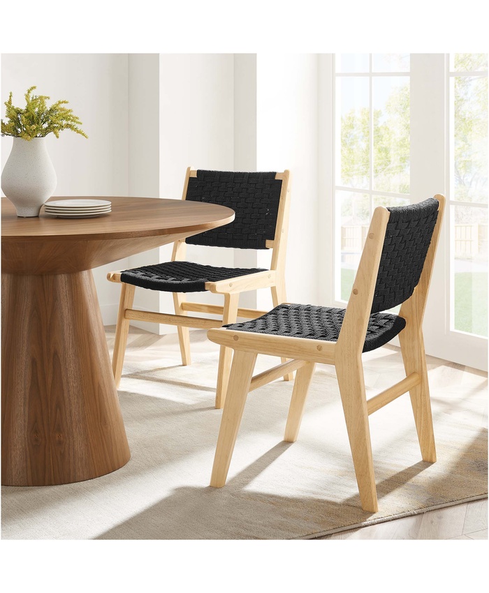 Saoirse Woven Rope Wood Dining Side Chair Set of 2 in Natural Black