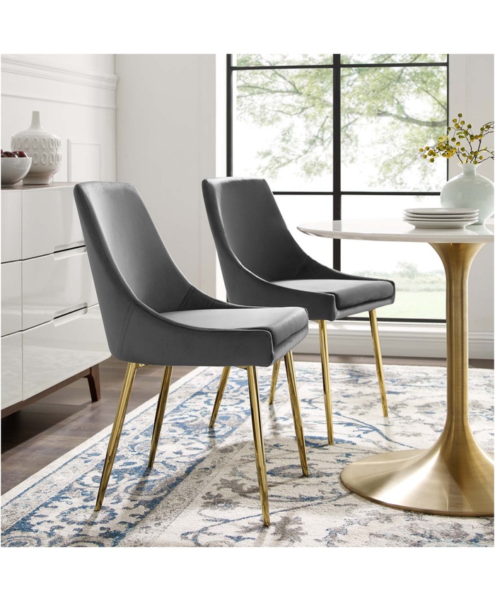 Viscount Performance Velvet Dining Chairs Set of 2 in Gold Charcoal